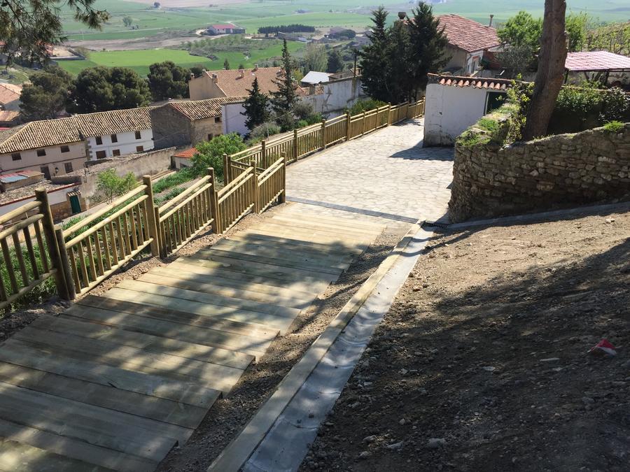 Renovación de la tubería de abastecimiento y saneamiento sustituyendo el pavimento por piedra natural e instalación de barandilla de rollizos de madera.